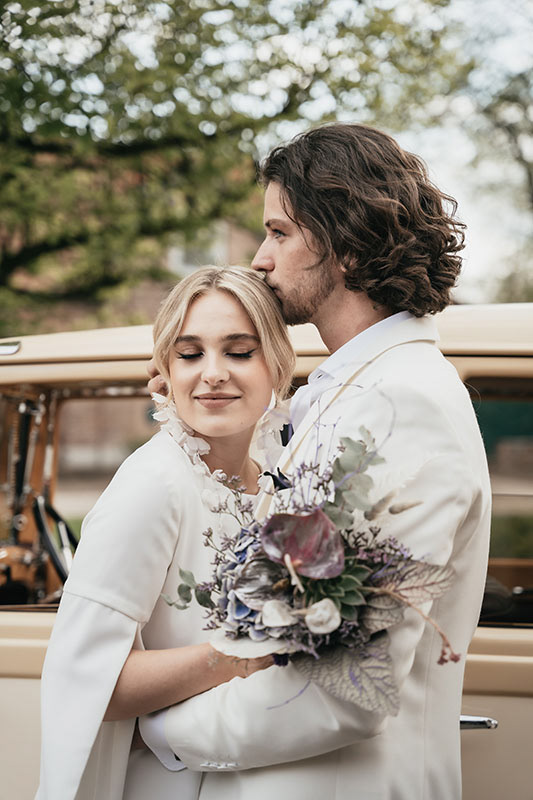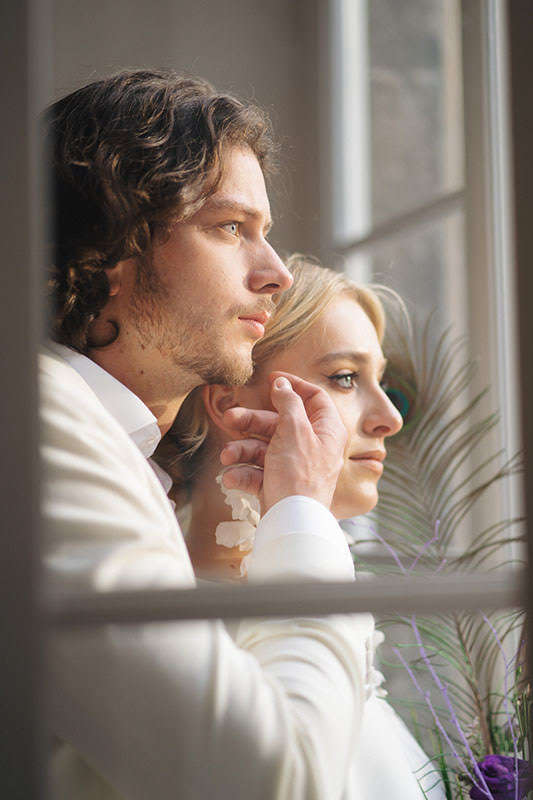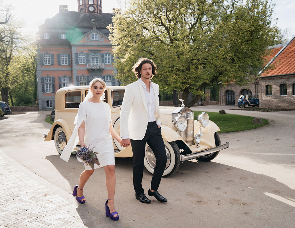 Die Räumlichkeiten und die Terrasse von Schloss Arff boten bei der Traumhochzeit von A & E herrliche Lichtverhältnisse für ein Shooting nach der Trauung. Eine Schlosshochzeit hat eine ganz besonders glamouröse Atmosphäre.